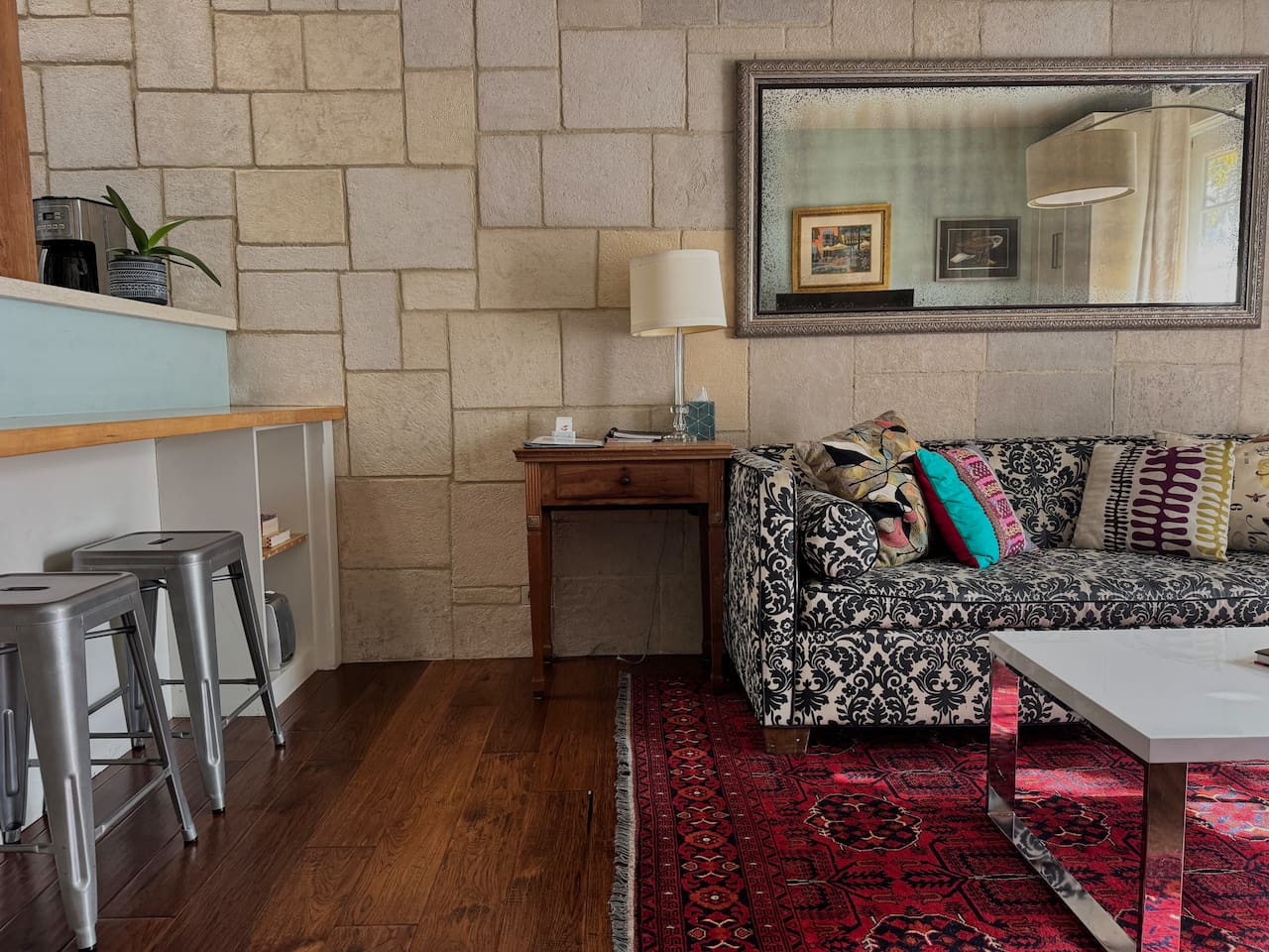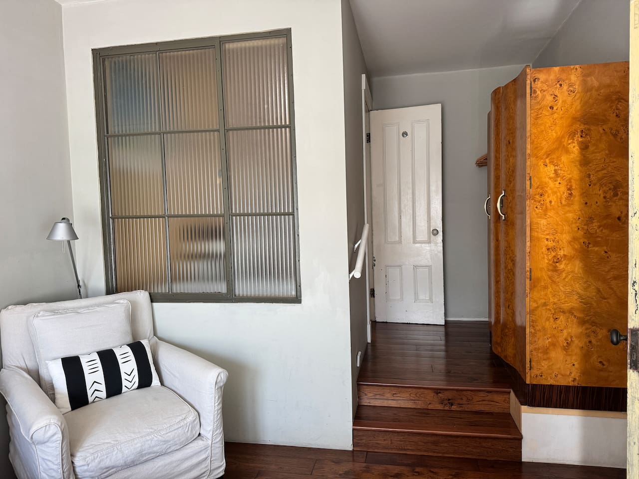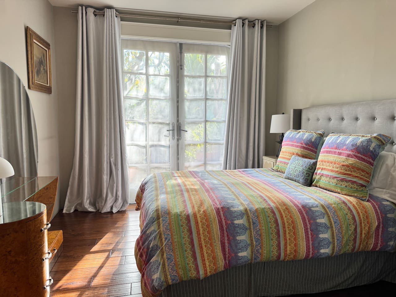 Soft winter light filters through the garden as you step inside, leaving the city’s energy just beyond the gate. Radiant heat warms the floors underfoot while the quiet of this tucked-away suite settles around you. Even on cooler San Francisco days, the space feels calm, grounded, and inviting. Layout & setting This garden-level guest suite sits discreetly behind the main house with its own private entrance and self check-in via keypad. Designed with layered textures, stone details, and hardwood floors, it offers a peaceful retreat while remaining connected to the surrounding neighborhood. French doors open to a shared, fully fenced backyard where greenery remains part of your daily rhythm. Sleeping arrangements The bedroom features a queen bed positioned for comfort and garden views, along with wardrobe storage for longer stays. In the living room, a queen sleeper sofa provides an additional sleeping option. The bathroom is accessed through the bedroom and includes both a bathtub and a walk-in shower, along with bathroom essentials. Radiant heating continues here, adding comfort during cooler months. Kitchenette & dining The kitchenette is designed for simple meals and easy mornings. You’ll have a refrigerator, freezer, microwave, toaster, coffee maker, hot water kettle, cooking basics, and a dining table suitable for casual dining or remote work. Coffee is provided to start your day at your own pace. Comfort & connectivity Stay connected with Wifi and an Ethernet connection. Evenings can be spent unwinding with the 50-inch TV with Netflix and Apple TV, or browsing the books and reading material available in the suite. Outdoor space Guests have access to a shared patio or balcony and a shared backyard - fully fenced and open to the garden setting. Sun loungers offer a quiet place to relax outdoors year-round. Neighborhood Located in Noe Valley, the suite balances residential calm with easy access to transit. The J Church Muni stop is one block away, and 24th Street BART is within walking distance. Restaurants, cafes, and shops along Church Street, 24th Street, Mission Street, and Valencia are easily accessible, as are the Mission District and the Castro. Civic Center destinations are about 20 minutes away by car or public transportation. Free street parking is available, and a Pack ’n play/travel crib is always at the listing for guests traveling with little ones.