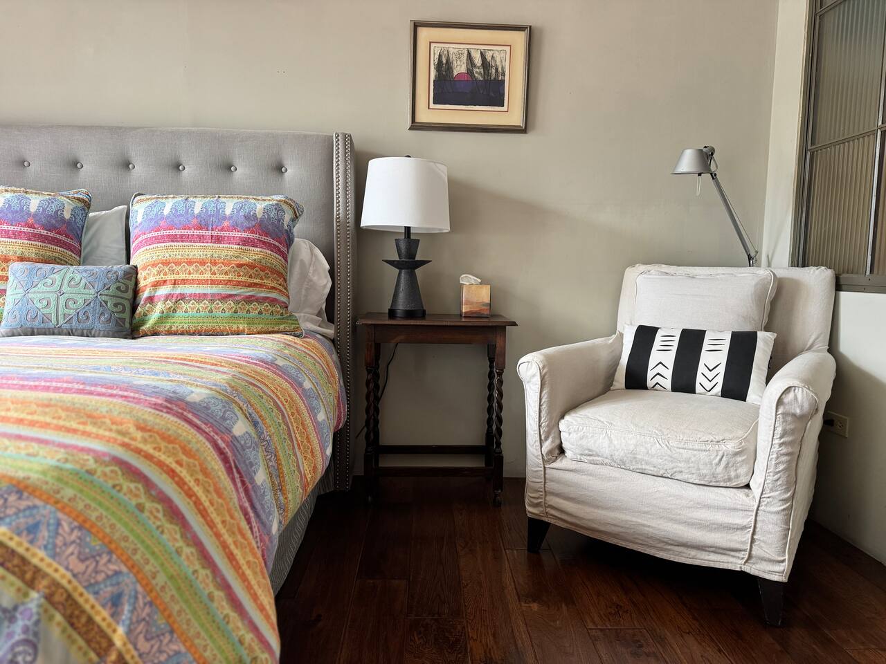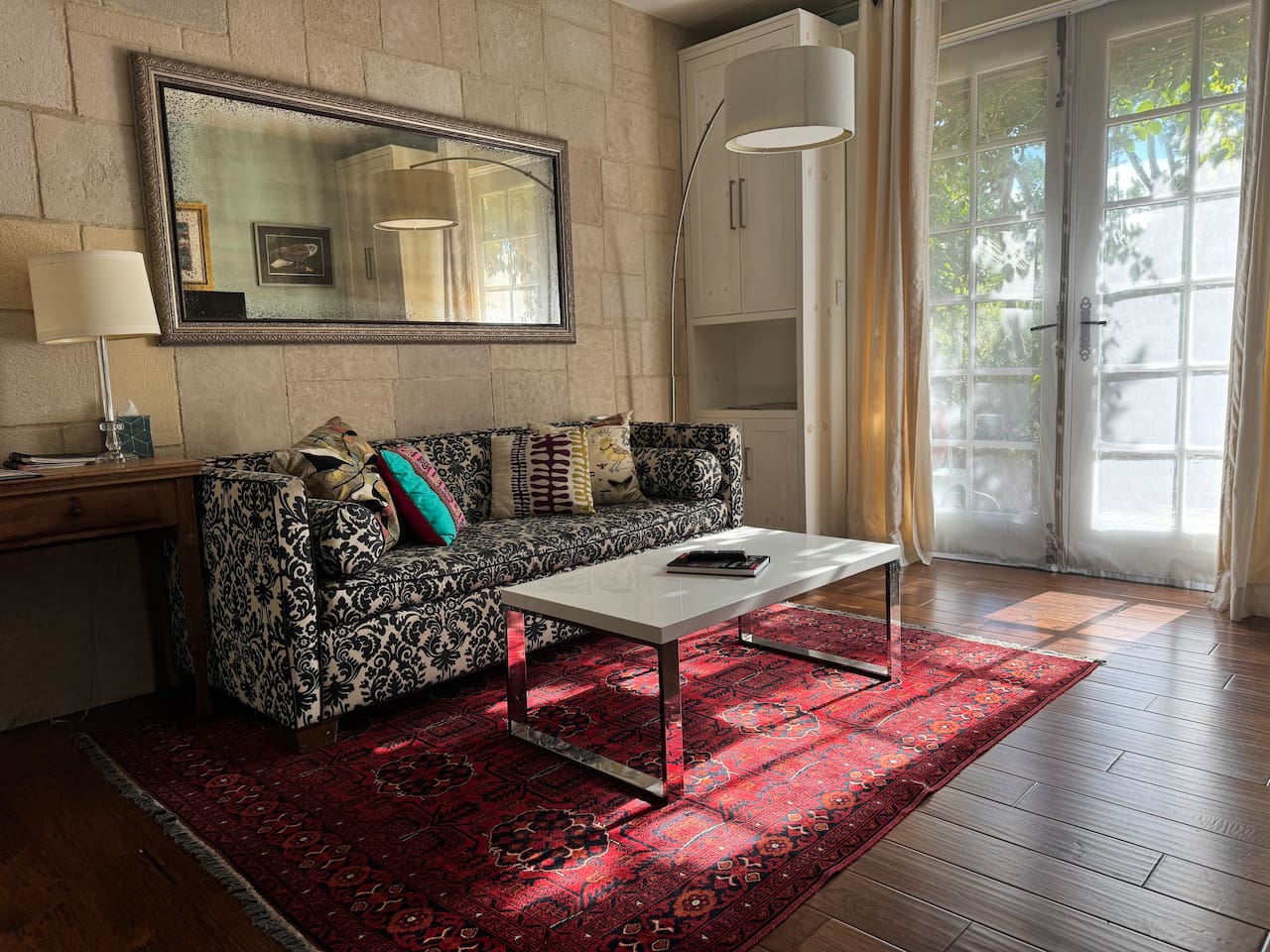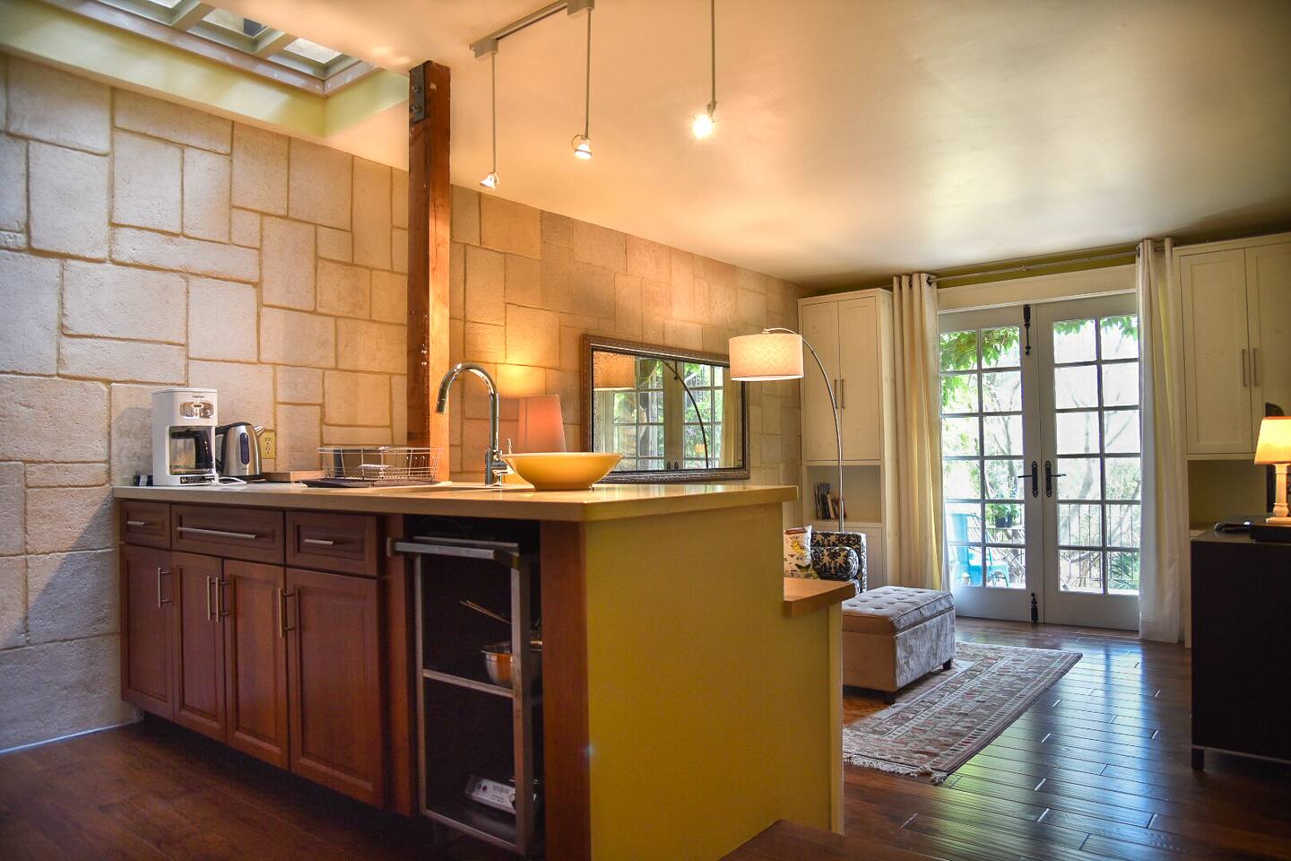 Soft winter light filters through the garden as you step inside, leaving the city’s energy just beyond the gate. Radiant heat warms the floors underfoot while the quiet of this tucked-away suite settles around you. Even on cooler San Francisco days, the space feels calm, grounded, and inviting. Layout & setting This garden-level guest suite sits discreetly behind the main house with its own private entrance and self check-in via keypad. Designed with layered textures, stone details, and hardwood floors, it offers a peaceful retreat while remaining connected to the surrounding neighborhood. French doors open to a shared, fully fenced backyard where greenery remains part of your daily rhythm. Sleeping arrangements The bedroom features a queen bed positioned for comfort and garden views, along with wardrobe storage for longer stays. In the living room, a queen sleeper sofa provides an additional sleeping option. The bathroom is accessed through the bedroom and includes both a bathtub and a walk-in shower, along with bathroom essentials. Radiant heating continues here, adding comfort during cooler months. Kitchenette & dining The kitchenette is designed for simple meals and easy mornings. You’ll have a refrigerator, freezer, microwave, toaster, coffee maker, hot water kettle, cooking basics, and a dining table suitable for casual dining or remote work. Coffee is provided to start your day at your own pace. Comfort & connectivity Stay connected with Wifi and an Ethernet connection. Evenings can be spent unwinding with the 50-inch TV with Netflix and Apple TV, or browsing the books and reading material available in the suite. Outdoor space Guests have access to a shared patio or balcony and a shared backyard - fully fenced and open to the garden setting. Sun loungers offer a quiet place to relax outdoors year-round. Neighborhood Located in Noe Valley, the suite balances residential calm with easy access to transit. The J Church Muni stop is one block away, and 24th Street BART is within walking distance. Restaurants, cafes, and shops along Church Street, 24th Street, Mission Street, and Valencia are easily accessible, as are the Mission District and the Castro. Civic Center destinations are about 20 minutes away by car or public transportation. Free street parking is available, and a Pack ’n play/travel crib is always at the listing for guests traveling with little ones.