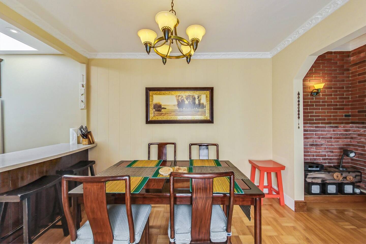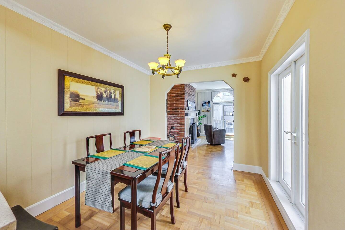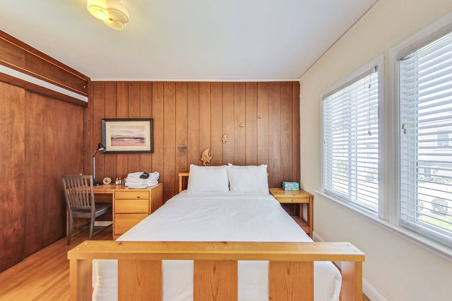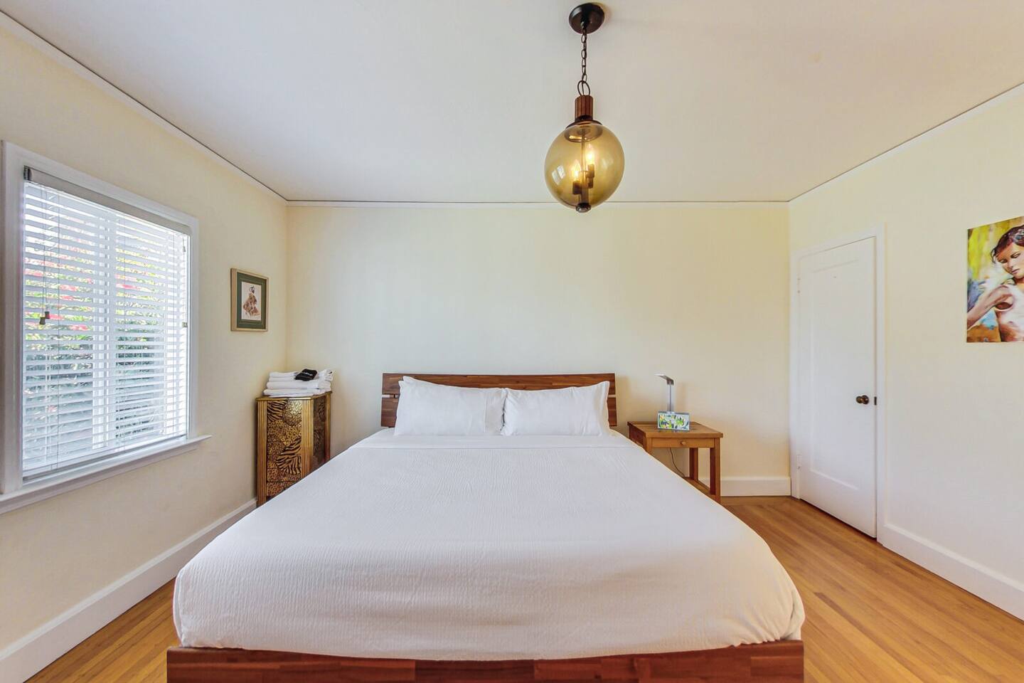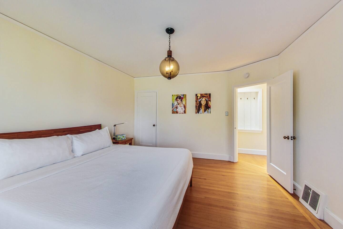 The two bedrooms are located side by side and share a wall, making them convenient for families or groups. The bathroom is just down the hall, only a few steps from both bedrooms. Please do not park in the driveway, as the garage is in use—thank you for your understanding. Laundry facilities are available in the garage and can be accessed via a short flight of stairs. The neighborhood is quiet and peaceful, ideal for a relaxing stay. Most rooms feature hard flooring rather than carpet. Please note that the fireplace is not available for guest use.