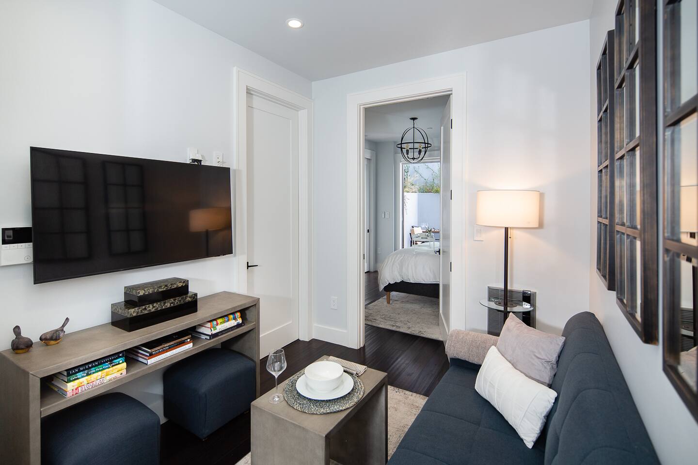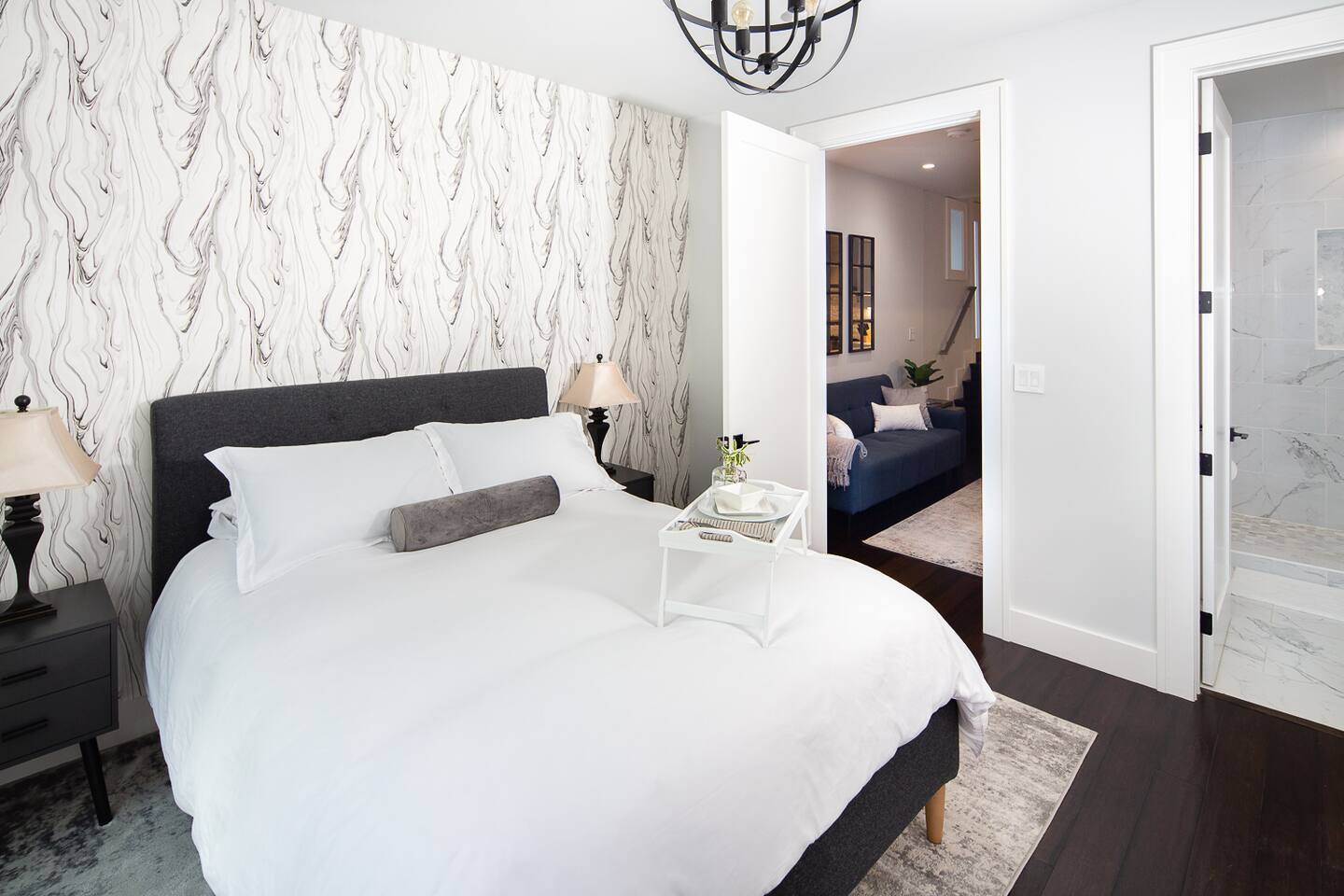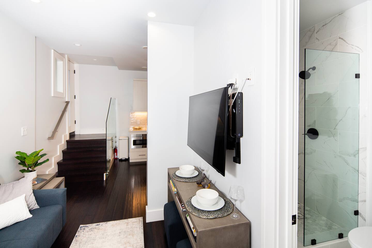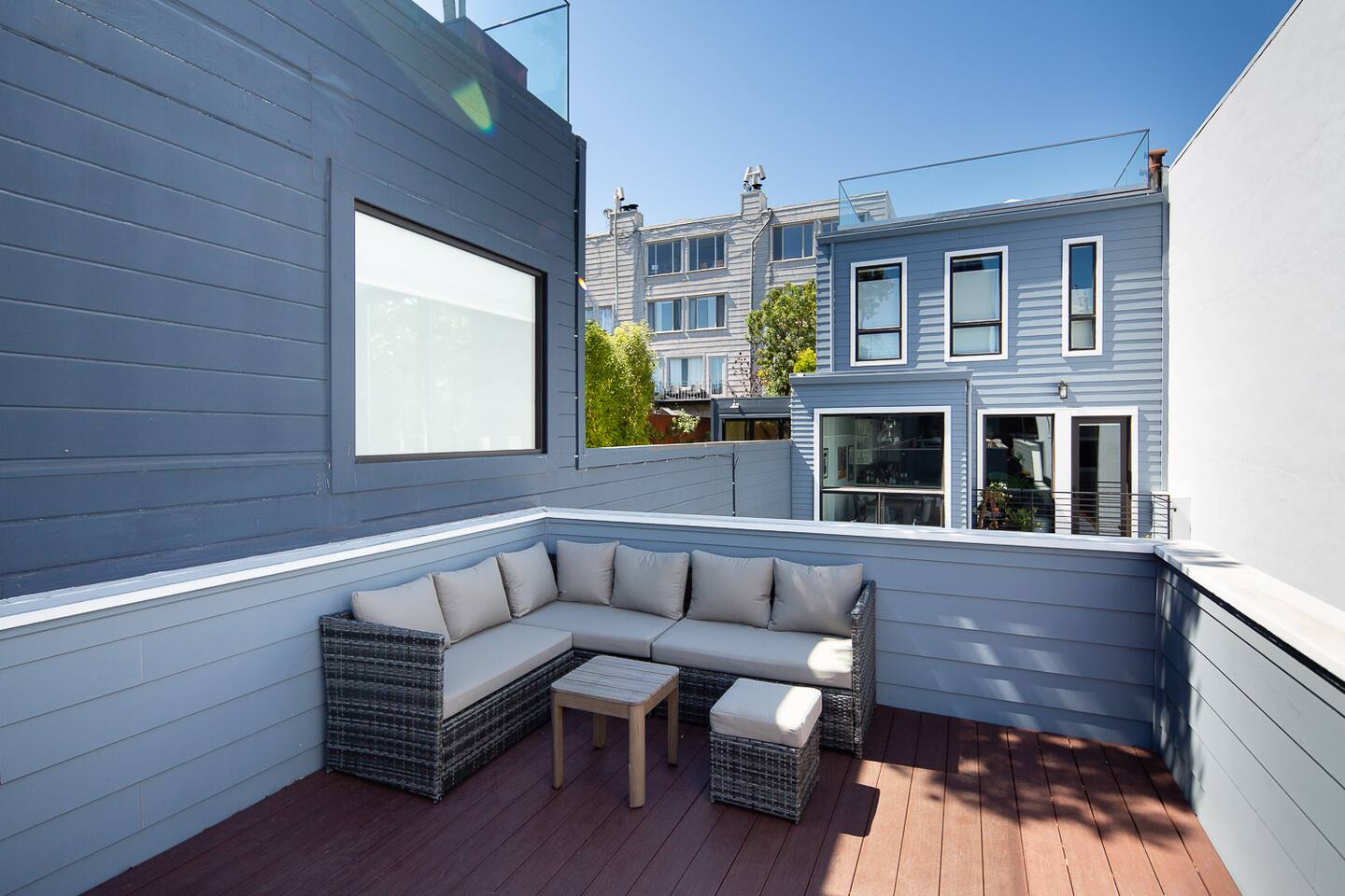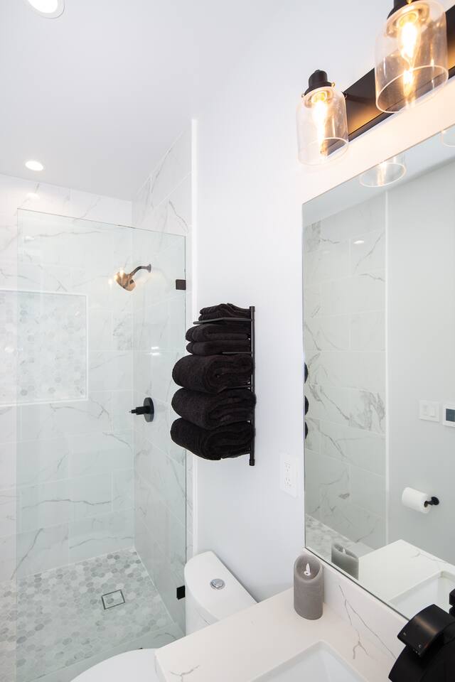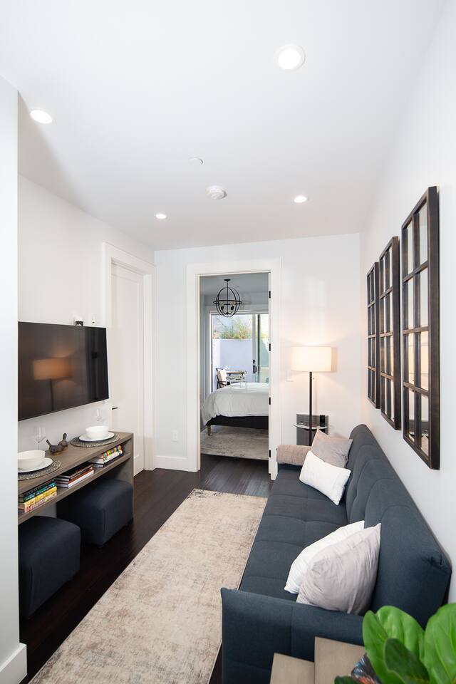 Modern 1BR/1BA Condo with Terrace & Stunning City Views Welcome to this beautifully remodeled 520 sq ft 1BR/1BA condo, designed to feel spacious and inviting with high ceilings, abundant natural light, and a private terrace off the bedroom. Perfect for 2 guests, this urban retreat combines modern luxury with thoughtful touches for a truly memorable stay. The fully equipped kitchen features top-of-the-line Fisher & Paykel appliances, including a gas oven, dishwasher, drawer-style microwave, and a Haier washer/dryer combo—ideal for long or short stays. Relax in the living room with a 50” TV, or step onto the terrace to enjoy a glass of wine by the cozy fire pit. The stylish sofa easily converts into a full sleeper, while a multi-functional lamp offers wireless charging for your devices. Unwind in the luxurious bathroom with marble and heated floors, and connect your Bluetooth to the built-in speaker for a personalized soundtrack while showering. The bedroom boasts a comfortable workspace, perfect for catching up on emails or video calling loved ones. Head upstairs to the shared rooftop deck for breathtaking views of the Transamerica Pyramid and San Francisco's skyline. Enjoy your morning coffee or an evening glass of wine while soaking in the city lights—it’s a view you’ll never forget. At night, motorized shades ensure a peaceful and restful sleep. Wake up to stunning sunrises over the Bay, best enjoyed from your private terrace. Whether you're here for work, leisure, or a bit of both, this condo offers the perfect mix of comfort, style, and convenience. Book your stay today and experience San Francisco like never before!