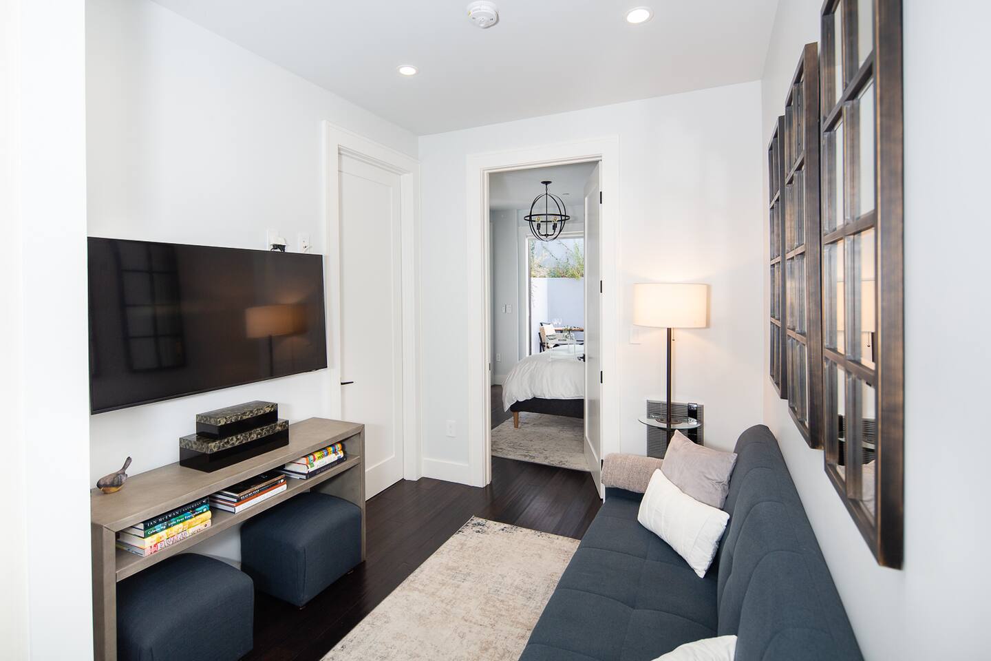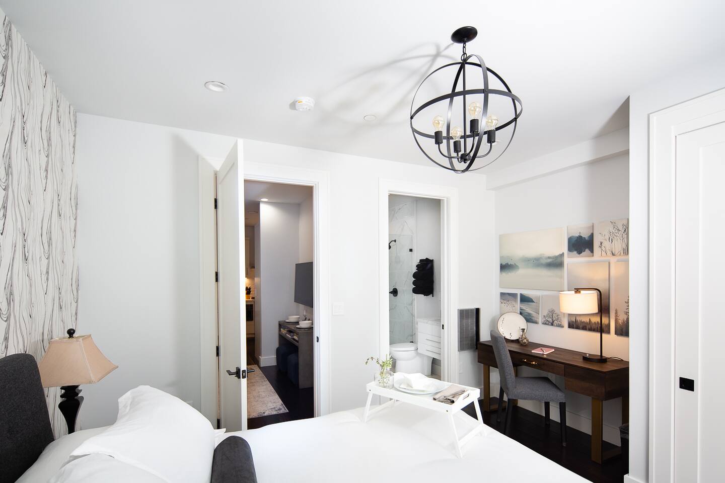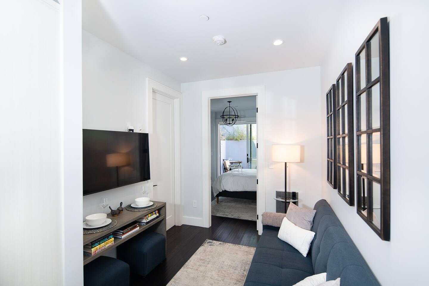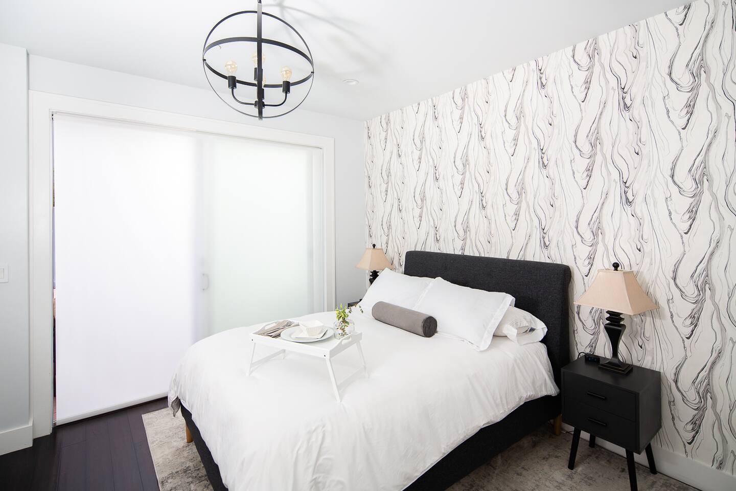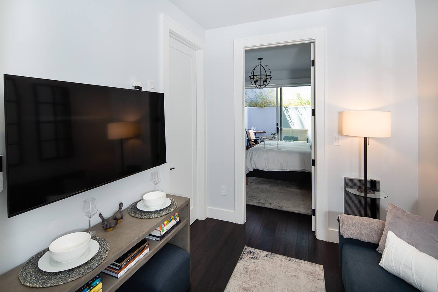Modern 1BR/1BA Condo with Terrace & Stunning City Views Welcome to this beautifully remodeled 520 sq ft 1BR/1BA condo, designed to feel spacious and inviting with high ceilings, abundant natural light, and a private terrace off the bedroom. Perfect for 2 guests, this urban retreat combines modern luxury with thoughtful touches for a truly memorable stay. The fully equipped kitchen features top-of-the-line Fisher & Paykel appliances, including a gas oven, dishwasher, drawer-style microwave, and a Haier washer/dryer combo—ideal for long or short stays. Relax in the living room with a 50” TV, or step onto the terrace to enjoy a glass of wine by the cozy fire pit. The stylish sofa easily converts into a full sleeper, while a multi-functional lamp offers wireless charging for your devices. Unwind in the luxurious bathroom with marble and heated floors, and connect your Bluetooth to the built-in speaker for a personalized soundtrack while showering. The bedroom boasts a comfortable workspace, perfect for catching up on emails or video calling loved ones. Head upstairs to the shared rooftop deck for breathtaking views of the Transamerica Pyramid and San Francisco's skyline. Enjoy your morning coffee or an evening glass of wine while soaking in the city lights—it’s a view you’ll never forget. At night, motorized shades ensure a peaceful and restful sleep. Wake up to stunning sunrises over the Bay, best enjoyed from your private terrace. Whether you're here for work, leisure, or a bit of both, this condo offers the perfect mix of comfort, style, and convenience. Book your stay today and experience San Francisco like never before!