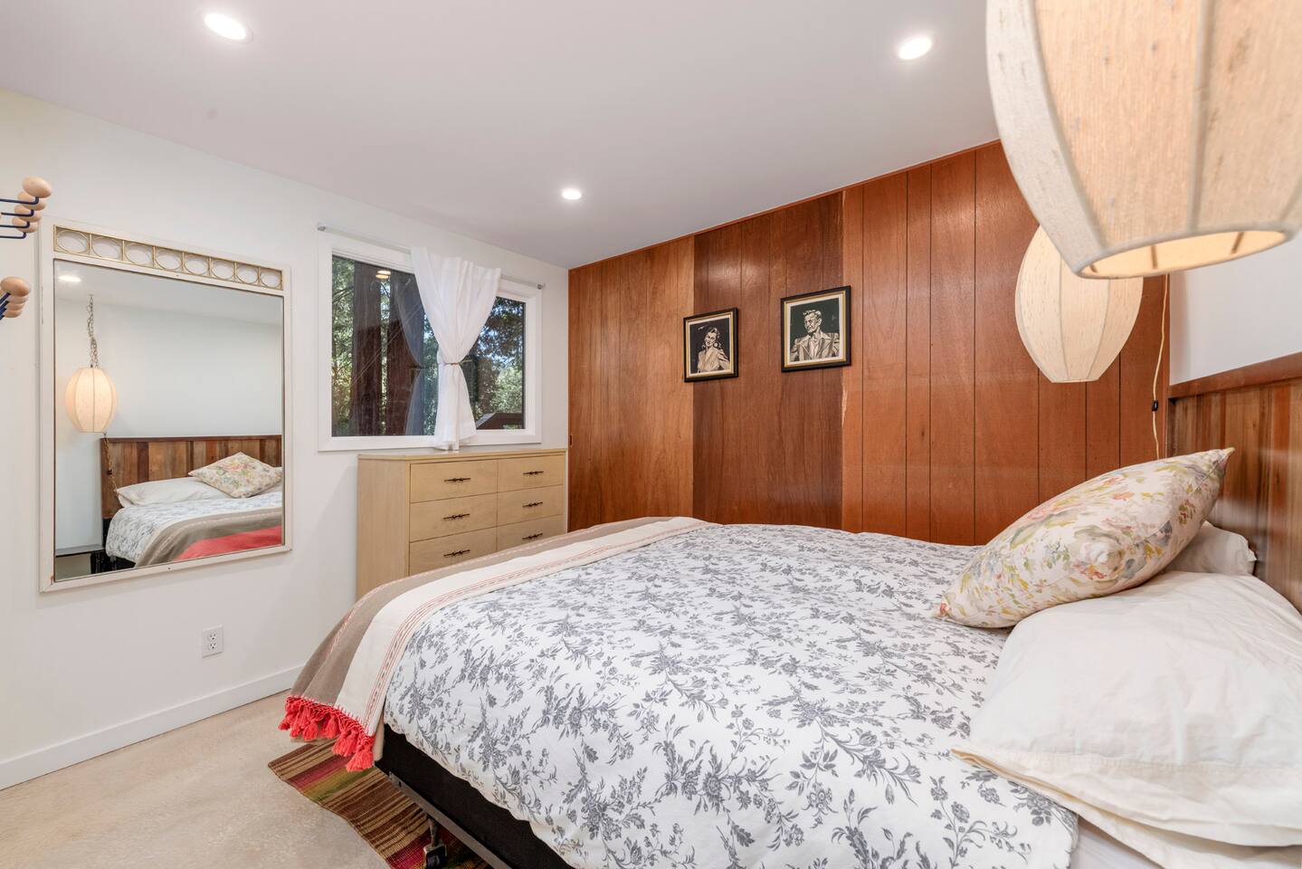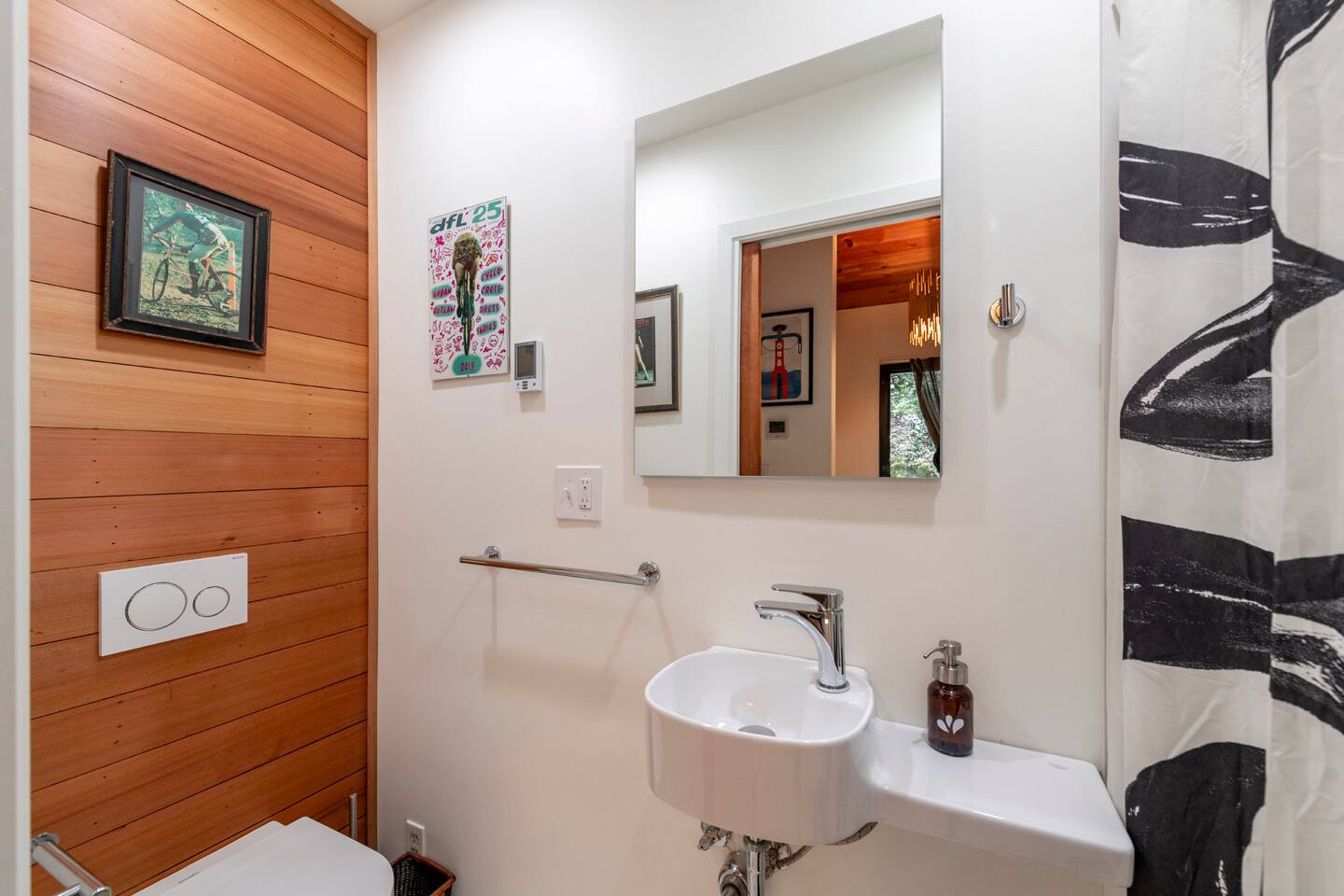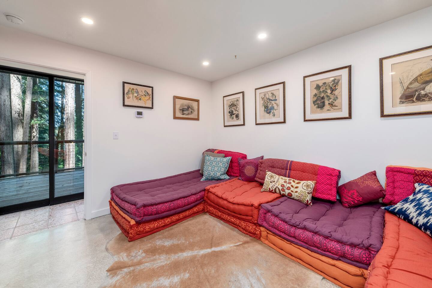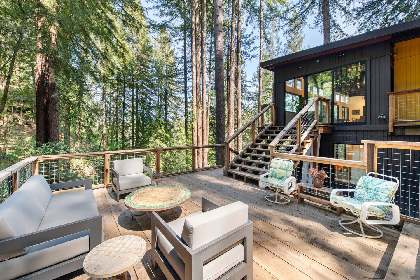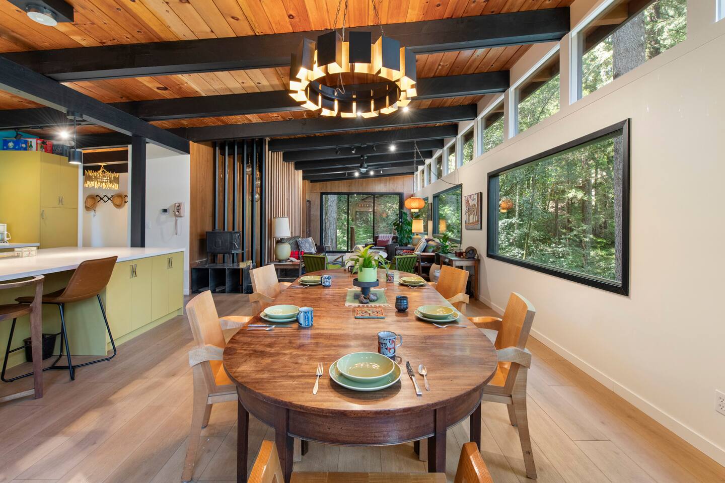 Tucked among towering redwoods, this spacious cabin offers a serene forest retreat where you can slow down, breathe deeply, and reconnect with nature. Step onto peaceful decks surrounded by whispering trees, sip coffee as morning light filters through the canopy, or unwind beneath a sky full of stars. With thoughtful retro-modern touches and the quiet rhythm of Camp Meeker, this home invites you to rest, explore, and savor the stillness. Sleeping arrangements Designed to host up to four guests, the cabin features two inviting bedrooms and three full bathrooms. The primary bedroom on the lower level includes a private en-suite bath and forest views, while the second bedroom provides a comfortable space for restful nights. Living spaces The open-plan upper floor includes a bright living area with mid-century décor, a dining space for shared meals, and a full bathroom for convenience. Downstairs, a separate den offers an additional lounge area for reading or quiet time, along with access to another deck overlooking the woods. Kitchen & dining A fully equipped kitchen makes cooking easy with all the essentials, including a refrigerator, stove, oven, microwave, coffee maker, and more. Prepare meals with forest views, then gather at the dining table to enjoy them together. Outdoor living Two expansive decks create seamless indoor-outdoor flow. Lounge on outdoor furniture, enjoy meals at the dining area, or fire up the BBQ grill surrounded by nature. The private patio and sun loungers invite slow mornings and lazy afternoons in the fresh mountain air. Comfort & convenience The cabin provides fast WiFi, a dedicated workspace, washer and dryer, heating, and bathroom essentials. While there’s no TV or air conditioning, the setting encourages relaxation away from screens. Cell service may be limited, but WiFi remains reliable throughout. Safety & security Equipped with smoke and carbon monoxide alarms, a first aid kit, fire extinguisher, and an exterior Ring doorbell camera at the front, the home ensures peace of mind during your stay. Parking & access Guests enjoy free parking on-site and additional street parking if needed. The private entrance and lockbox self check-in offer convenience and privacy from arrival to departure. Neighborhood Located near the Russian River and just a short drive from Occidental and Sebastopol, the cabin provides easy access to Sonoma County’s scenic wineries, breweries, and hiking or biking trails. Surrounded by redwoods and wildlife, it offers both seclusion and proximity to local adventures. Perfect for Couples, small families, and pet owners seeking a pet-friendly escape in the heart of the forest. Whether you’re here to write, explore, or simply rest among the redwoods, this Camp Meeker hideaway offers the space and tranquility you’ve been craving.