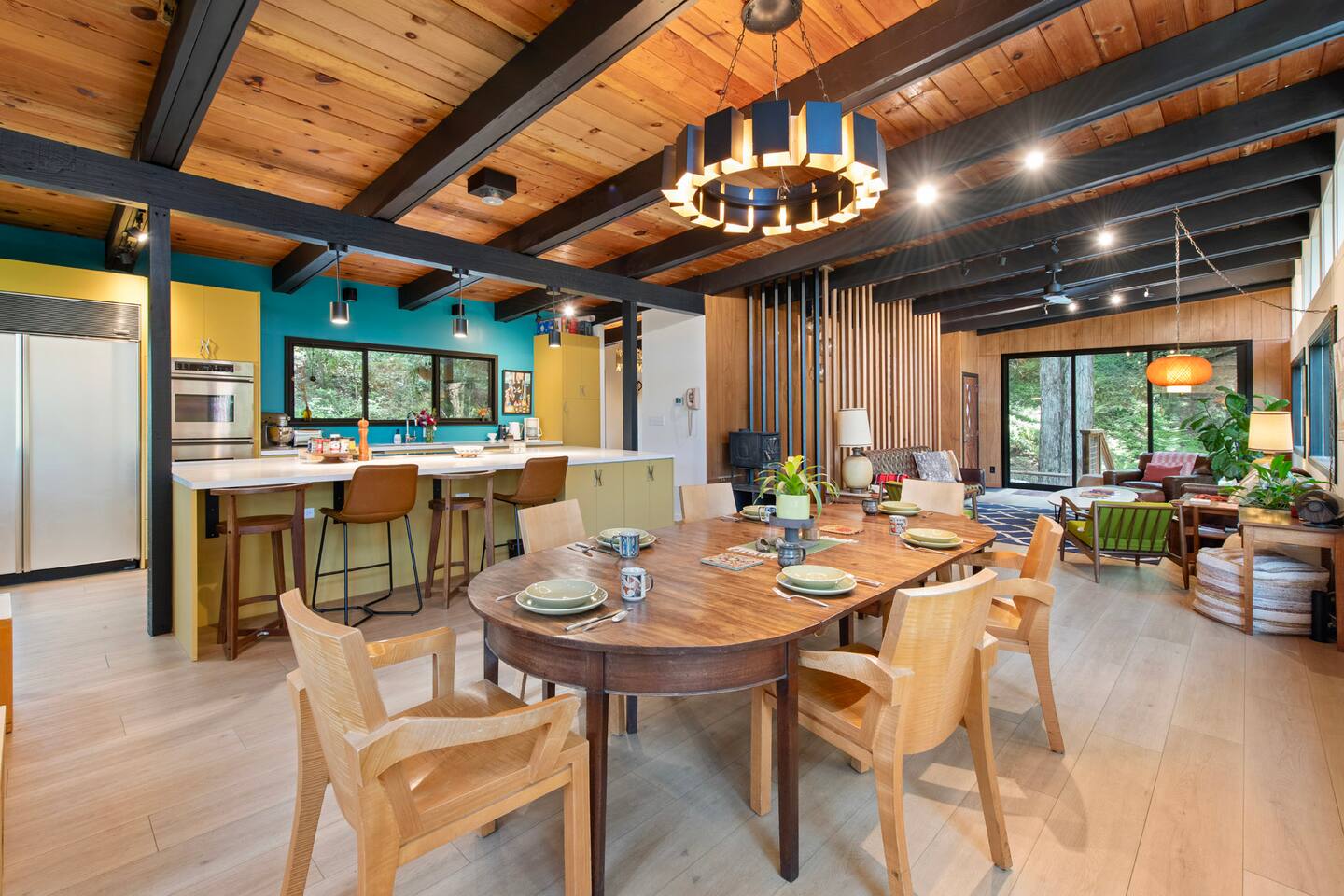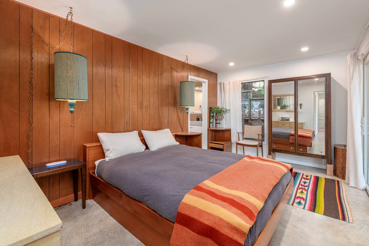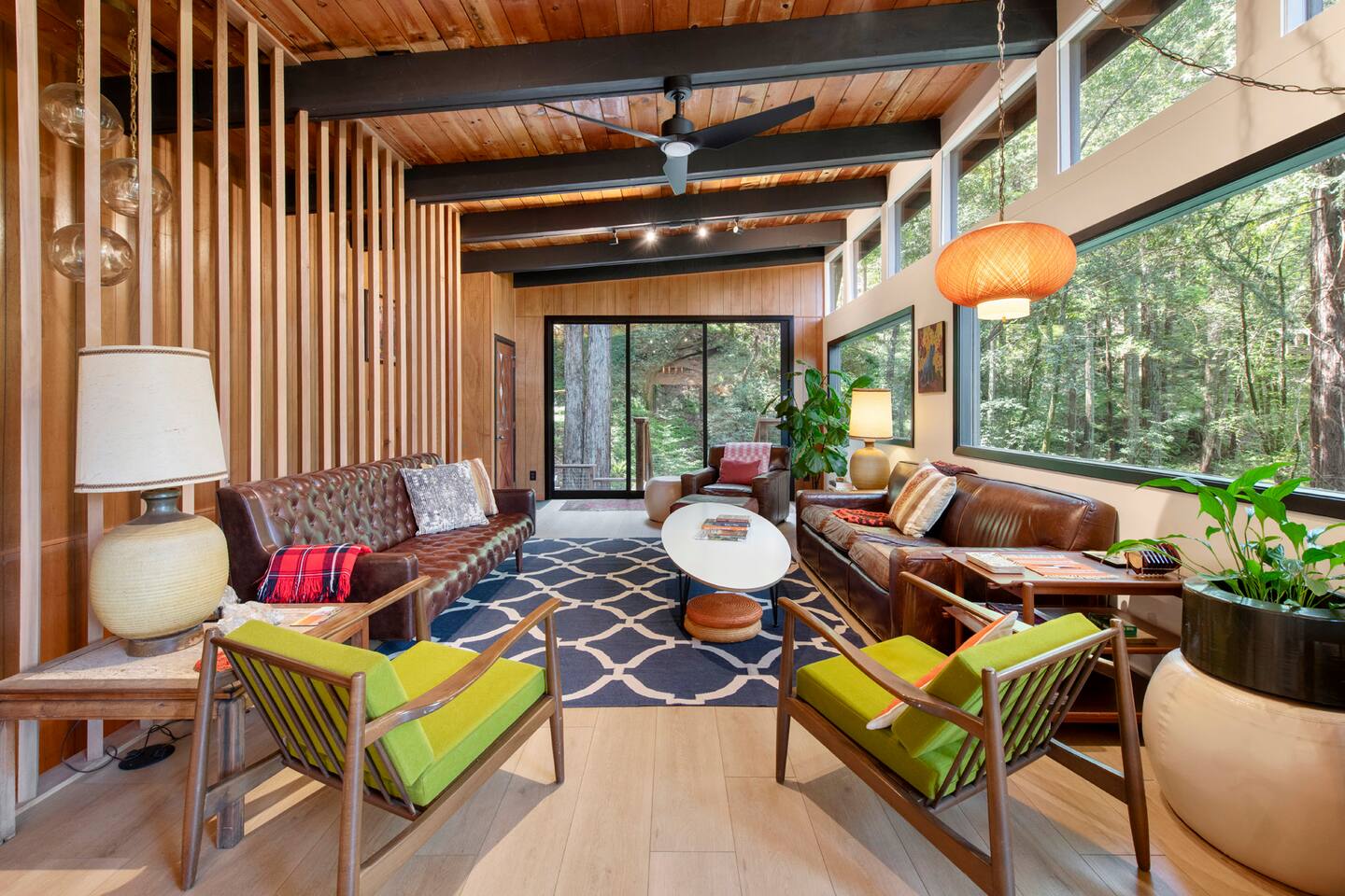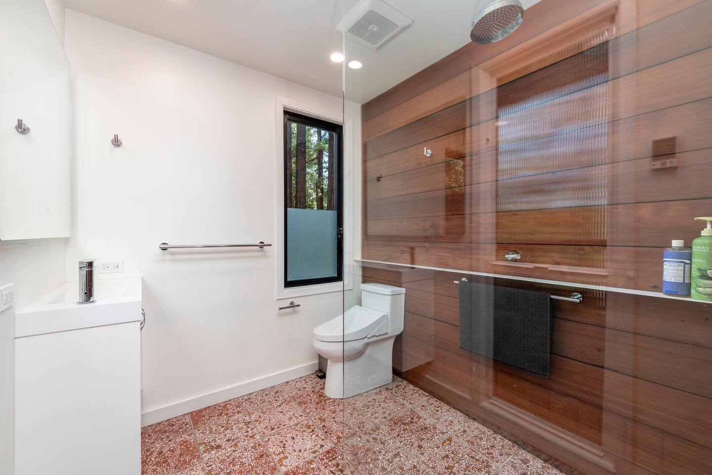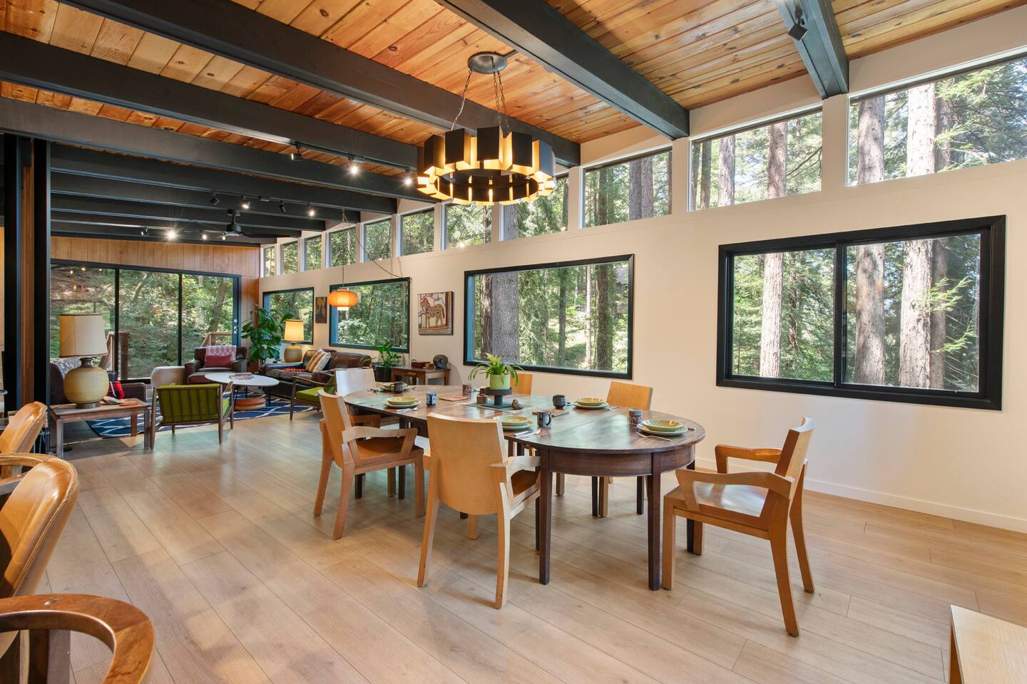 Tucked among towering redwoods, this spacious cabin offers a serene forest retreat where you can slow down, breathe deeply, and reconnect with nature. Step onto peaceful decks surrounded by whispering trees, sip coffee as morning light filters through the canopy, or unwind beneath a sky full of stars. With thoughtful retro-modern touches and the quiet rhythm of Camp Meeker, this home invites you to rest, explore, and savor the stillness. Sleeping arrangements Designed to host up to four guests, the cabin features two inviting bedrooms and three full bathrooms. The primary bedroom on the lower level includes a private en-suite bath and forest views, while the second bedroom provides a comfortable space for restful nights. Living spaces The open-plan upper floor includes a bright living area with mid-century décor, a dining space for shared meals, and a full bathroom for convenience. Downstairs, a separate den offers an additional lounge area for reading or quiet time, along with access to another deck overlooking the woods. Kitchen & dining A fully equipped kitchen makes cooking easy with all the essentials, including a refrigerator, stove, oven, microwave, coffee maker, and more. Prepare meals with forest views, then gather at the dining table to enjoy them together. Outdoor living Two expansive decks create seamless indoor-outdoor flow. Lounge on outdoor furniture, enjoy meals at the dining area, or fire up the BBQ grill surrounded by nature. The private patio and sun loungers invite slow mornings and lazy afternoons in the fresh mountain air. Comfort & convenience The cabin provides fast WiFi, a dedicated workspace, washer and dryer, heating, and bathroom essentials. While there’s no TV or air conditioning, the setting encourages relaxation away from screens. Cell service may be limited, but WiFi remains reliable throughout. Safety & security Equipped with smoke and carbon monoxide alarms, a first aid kit, fire extinguisher, and an exterior Ring doorbell camera at the front, the home ensures peace of mind during your stay. Parking & access Guests enjoy free parking on-site and additional street parking if needed. The private entrance and lockbox self check-in offer convenience and privacy from arrival to departure. Neighborhood Located near the Russian River and just a short drive from Occidental and Sebastopol, the cabin provides easy access to Sonoma County’s scenic wineries, breweries, and hiking or biking trails. Surrounded by redwoods and wildlife, it offers both seclusion and proximity to local adventures. Perfect for Couples, small families, and pet owners seeking a pet-friendly escape in the heart of the forest. Whether you’re here to write, explore, or simply rest among the redwoods, this Camp Meeker hideaway offers the space and tranquility you’ve been craving.