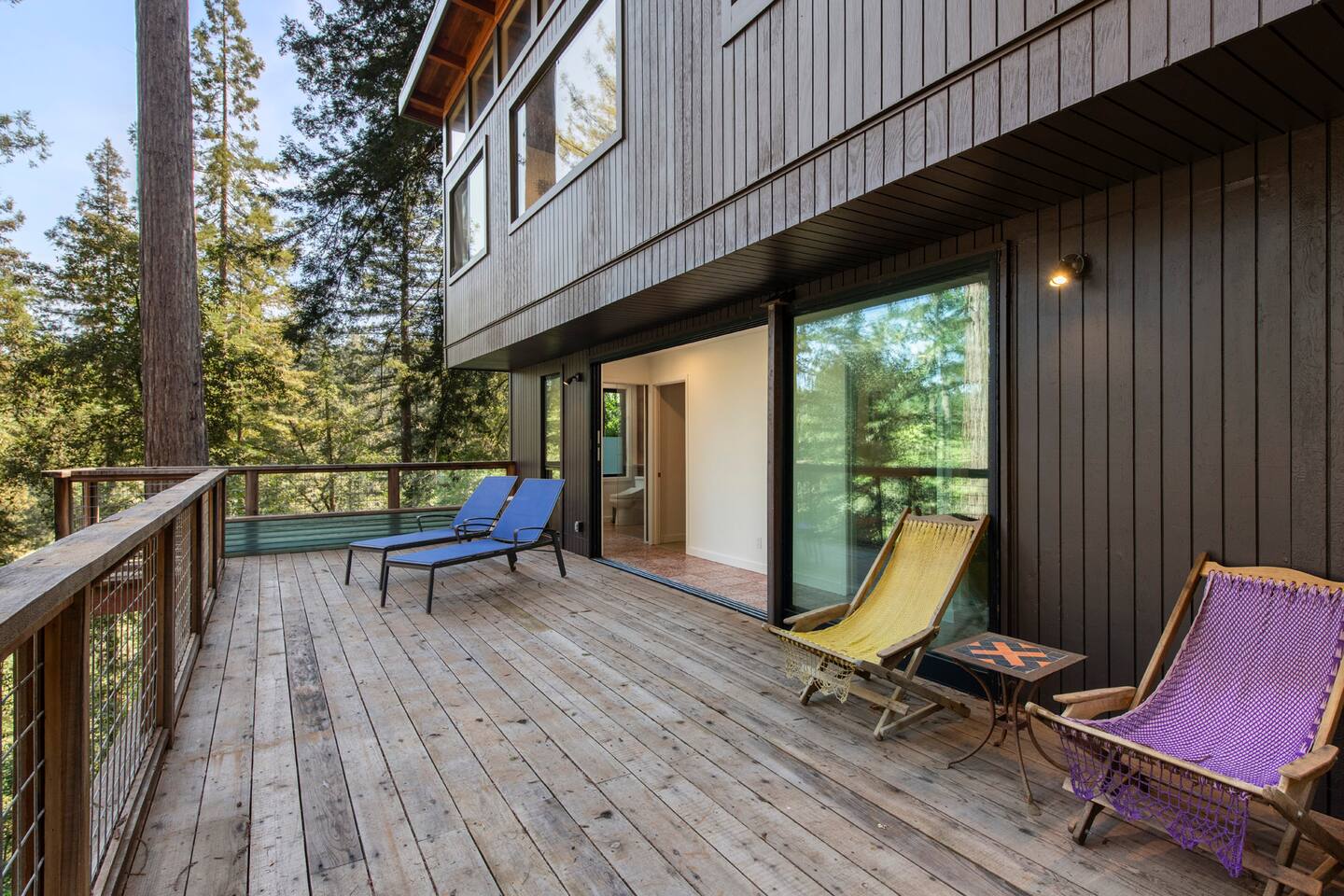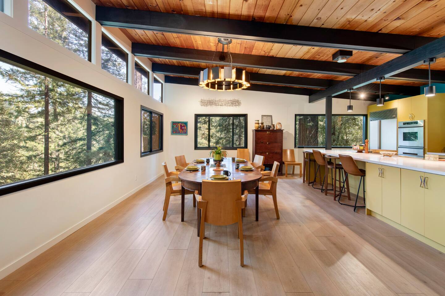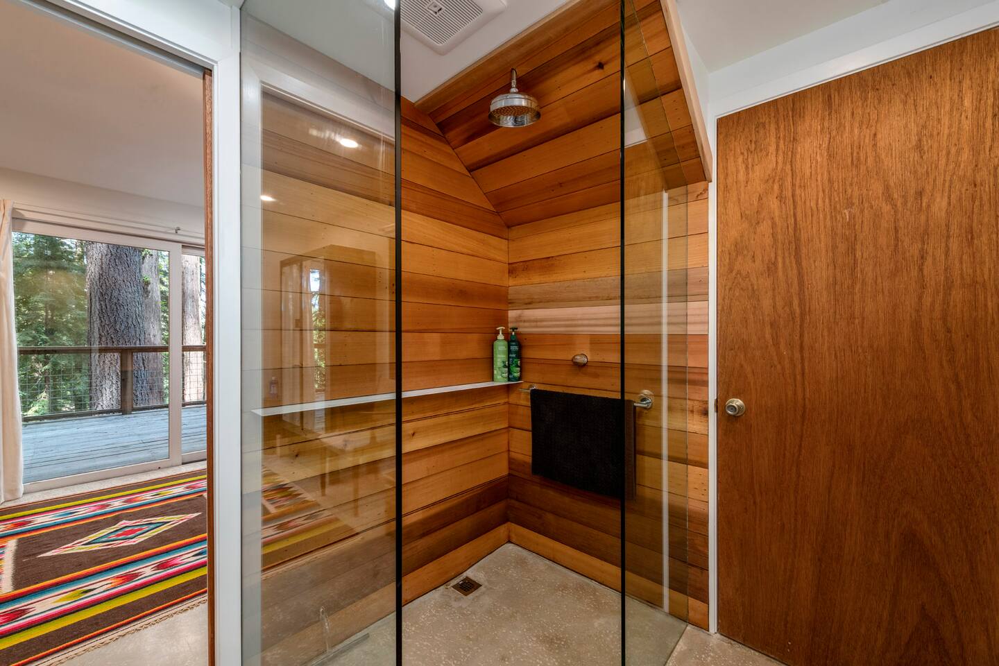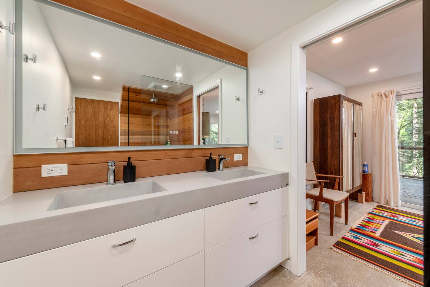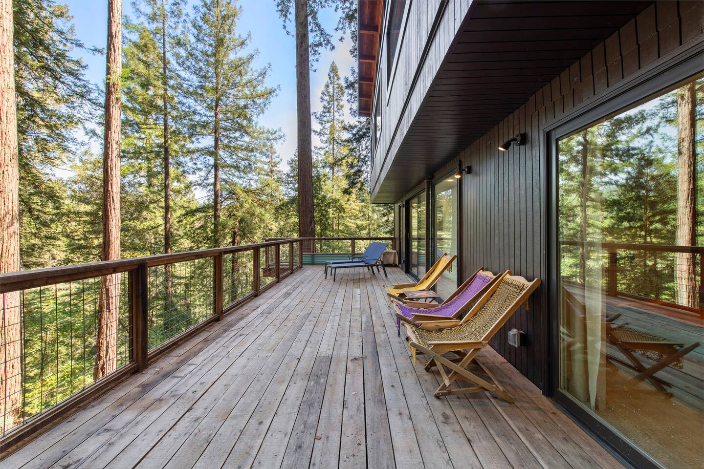 Tucked among towering redwoods, this spacious cabin offers a serene forest retreat where you can slow down, breathe deeply, and reconnect with nature. Step onto peaceful decks surrounded by whispering trees, sip coffee as morning light filters through the canopy, or unwind beneath a sky full of stars. With thoughtful retro-modern touches and the quiet rhythm of Camp Meeker, this home invites you to rest, explore, and savor the stillness. Sleeping arrangements Designed to host up to four guests, the cabin features two inviting bedrooms and three full bathrooms. The primary bedroom on the lower level includes a private en-suite bath and forest views, while the second bedroom provides a comfortable space for restful nights. Living spaces The open-plan upper floor includes a bright living area with mid-century décor, a dining space for shared meals, and a full bathroom for convenience. Downstairs, a separate den offers an additional lounge area for reading or quiet time, along with access to another deck overlooking the woods. Kitchen & dining A fully equipped kitchen makes cooking easy with all the essentials, including a refrigerator, stove, oven, microwave, coffee maker, and more. Prepare meals with forest views, then gather at the dining table to enjoy them together. Outdoor living Two expansive decks create seamless indoor-outdoor flow. Lounge on outdoor furniture, enjoy meals at the dining area, or fire up the BBQ grill surrounded by nature. The private patio and sun loungers invite slow mornings and lazy afternoons in the fresh mountain air. Comfort & convenience The cabin provides fast WiFi, a dedicated workspace, washer and dryer, heating, and bathroom essentials. While there’s no TV or air conditioning, the setting encourages relaxation away from screens. Cell service may be limited, but WiFi remains reliable throughout. Safety & security Equipped with smoke and carbon monoxide alarms, a first aid kit, fire extinguisher, and an exterior Ring doorbell camera at the front, the home ensures peace of mind during your stay. Parking & access Guests enjoy free parking on-site and additional street parking if needed. The private entrance and lockbox self check-in offer convenience and privacy from arrival to departure. Neighborhood Located near the Russian River and just a short drive from Occidental and Sebastopol, the cabin provides easy access to Sonoma County’s scenic wineries, breweries, and hiking or biking trails. Surrounded by redwoods and wildlife, it offers both seclusion and proximity to local adventures. Perfect for Couples, small families, and pet owners seeking a pet-friendly escape in the heart of the forest. Whether you’re here to write, explore, or simply rest among the redwoods, this Camp Meeker hideaway offers the space and tranquility you’ve been craving.