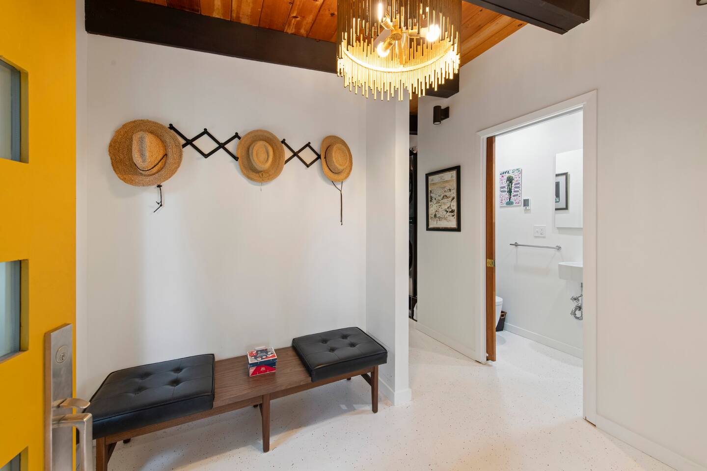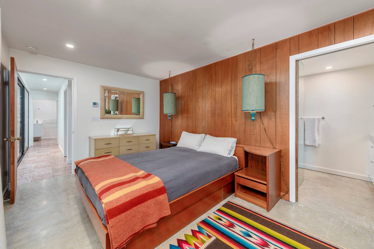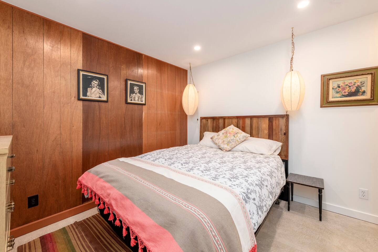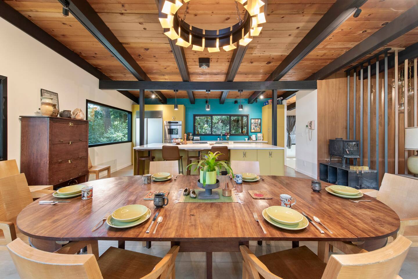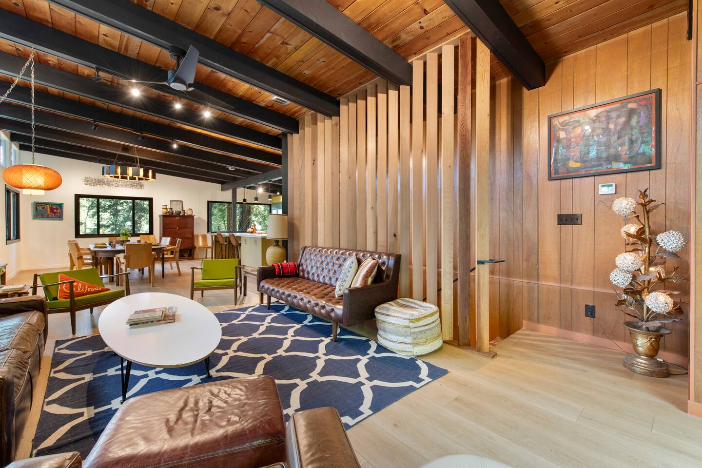 Tucked among towering redwoods, this spacious cabin offers a serene forest retreat where you can slow down, breathe deeply, and reconnect with nature. Step onto peaceful decks surrounded by whispering trees, sip coffee as morning light filters through the canopy, or unwind beneath a sky full of stars. With thoughtful retro-modern touches and the quiet rhythm of Camp Meeker, this home invites you to rest, explore, and savor the stillness. Sleeping arrangements Designed to host up to four guests, the cabin features two inviting bedrooms and three full bathrooms. The primary bedroom on the lower level includes a private en-suite bath and forest views, while the second bedroom provides a comfortable space for restful nights. Living spaces The open-plan upper floor includes a bright living area with mid-century décor, a dining space for shared meals, and a full bathroom for convenience. Downstairs, a separate den offers an additional lounge area for reading or quiet time, along with access to another deck overlooking the woods. Kitchen & dining A fully equipped kitchen makes cooking easy with all the essentials, including a refrigerator, stove, oven, microwave, coffee maker, and more. Prepare meals with forest views, then gather at the dining table to enjoy them together. Outdoor living Two expansive decks create seamless indoor-outdoor flow. Lounge on outdoor furniture, enjoy meals at the dining area, or fire up the BBQ grill surrounded by nature. The private patio and sun loungers invite slow mornings and lazy afternoons in the fresh mountain air. Comfort & convenience The cabin provides fast WiFi, a dedicated workspace, washer and dryer, heating, and bathroom essentials. While there’s no TV or air conditioning, the setting encourages relaxation away from screens. Cell service may be limited, but WiFi remains reliable throughout. Safety & security Equipped with smoke and carbon monoxide alarms, a first aid kit, fire extinguisher, and an exterior Ring doorbell camera at the front, the home ensures peace of mind during your stay. Parking & access Guests enjoy free parking on-site and additional street parking if needed. The private entrance and lockbox self check-in offer convenience and privacy from arrival to departure. Neighborhood Located near the Russian River and just a short drive from Occidental and Sebastopol, the cabin provides easy access to Sonoma County’s scenic wineries, breweries, and hiking or biking trails. Surrounded by redwoods and wildlife, it offers both seclusion and proximity to local adventures. Perfect for Couples, small families, and pet owners seeking a pet-friendly escape in the heart of the forest. Whether you’re here to write, explore, or simply rest among the redwoods, this Camp Meeker hideaway offers the space and tranquility you’ve been craving.