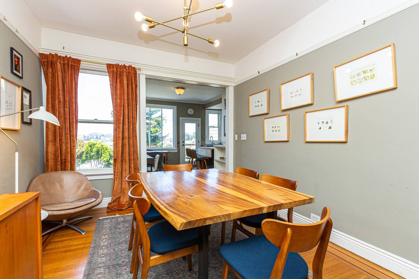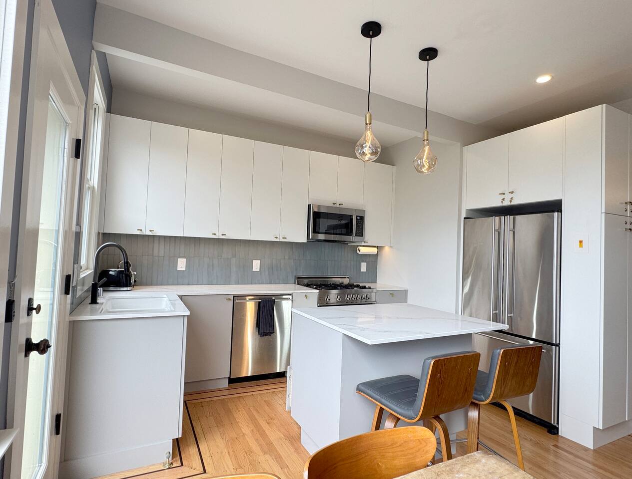 Soft winter light drifts through tall Victorian windows as the city stretches out beyond the rooftops - a calm vantage point above Noe Valley where you can watch the fog shift or the skyline sharpen against crisp Bay air. From the decks and backyard garden to the inviting interiors, this home gives you space to slow your pace while still staying connected to the energy of San Francisco. It is a peaceful place to return to after exploring the neighborhood’s cafés, parks, and tree-lined streets. Living spaces High ceilings, period details, and hardwood floors create an inviting backdrop for your stay. The main living areas offer generous natural light and a sense of openness suited to relaxed mornings or quiet evenings in cooler weather. Heating keeps the home comfortable, and the layout provides room to unwind after wandering nearby hills or taking in classic San Francisco sights. Sleeping arrangements The vaulted primary bedroom serves as a calm retreat with an en-suite bathroom and shower. French doors open onto a large private deck furnished with Adirondack chairs, where you can step outside to take in Bay and city skyline views. The second bedroom includes two twin beds, an en-suite sink, and ample storage. A second full bathroom downstairs features a claw-foot tub with a shower. All beds are outfitted with European Sleepworks mattresses and quality linens. Kitchen and dining A fully renovated kitchen opens directly to a deck that frames city views. The kitchen includes the essentials you need for preparing meals, along with a dining table for enjoying breakfast before setting out for the day. Whether you cook in or bring home favorites from nearby 24th Street, the space is designed for easy, everyday use. Outdoor living Two decks extend the home’s living space into the open air, offering a place to breathe in the cool season’s fresh, crisp atmosphere. The fully fenced private backyard garden provides a quiet green space with flowering plants and a Meyer lemon tree. Outdoor furniture makes it easy to linger outside when the weather allows. Amenities and access The home includes WiFi, a dedicated workspace, a washer and dryer, bathroom essentials, and self check-in via keypad. A private entrance and free street parking add convenience. Exterior security cameras are placed near the front door for safety, and the home is equipped with a smoke alarm, carbon monoxide alarm, fire extinguisher, and first aid kit. Neighborhood Only three blocks from 24th Street, the location places you close to cafés, specialty shops, groceries, and public transportation. A park with basketball courts, tennis courts, and a playground sits across the street, while trails at Glen Park Canyon are within reach for winter walks. The Castro, the Mission District, Golden Gate Park, and downtown are easily accessible. Perfect for Well suited for couples, friends, or small families, this entire home offers classic architecture, outdoor space, and a calm Noe Valley setting with year-round access to the best of San Francisco.