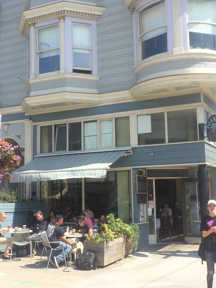 Walk or bike to Dolores Park, the historic Castro and Mission Districts, and the stunning Glen Park Canyon with hiking and natural beauty nearby. You’re also within easy reach of the museums, gardens, playgrounds, and picnic areas of Golden Gate Park. Basketball and tennis courts are right across the street, and Philz Coffee is just a few blocks away. Easy access to SFO and freeways for the South Bay makes travel simple. The lively 24th Street corridor offers Walgreens, Whole Foods, banks, a Post Office, and a public library, plus a fresh produce market on Saturday mornings. Noe Valley itself feels like a friendly small town in the heart of the city, with tree‑lined streets, independent shops, cafés, bakeries, and restaurants just a short stroll from your door. The neighborhood also enjoys one of the sunniest microclimates in San Francisco and has a vibrant community feel with local events and markets.