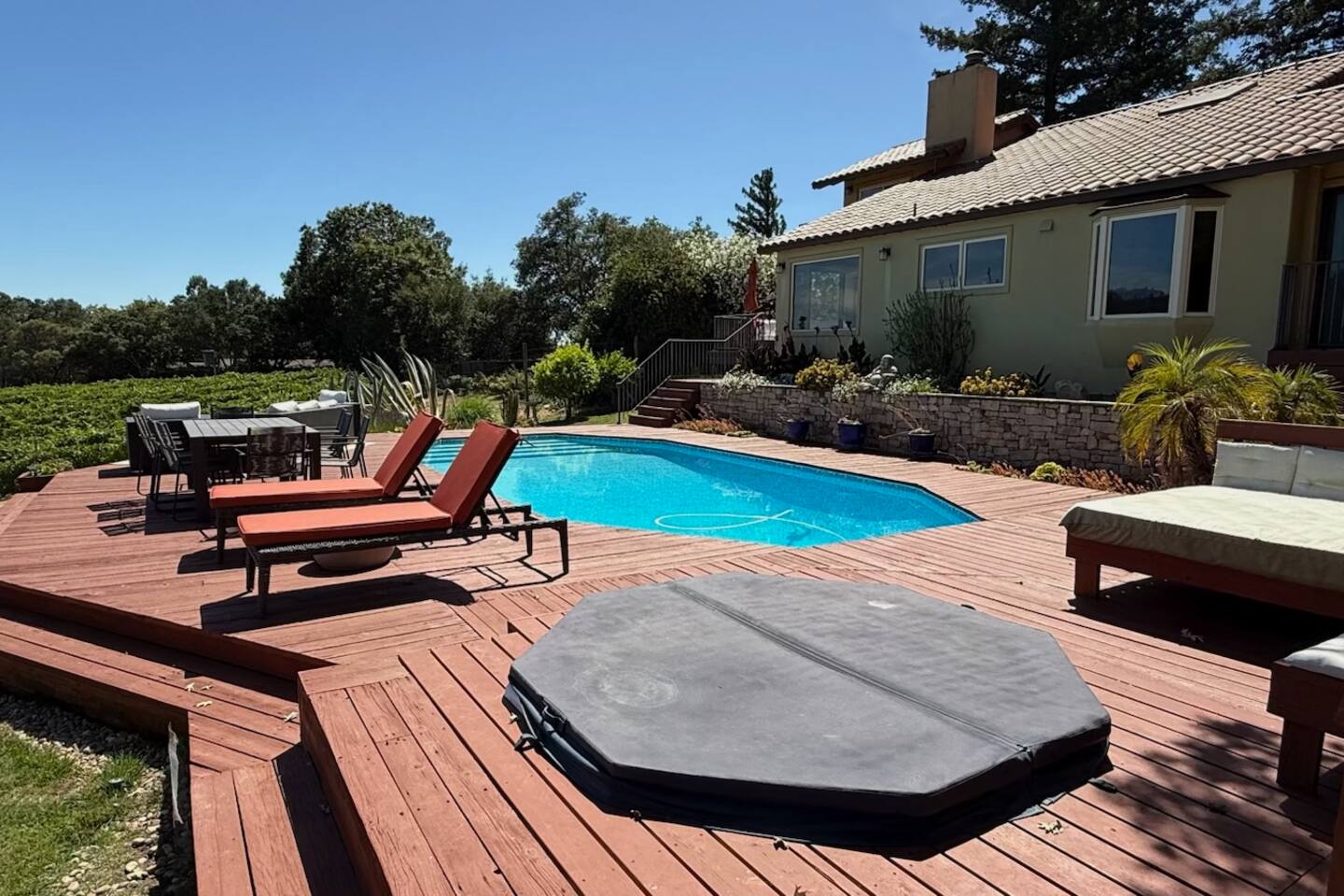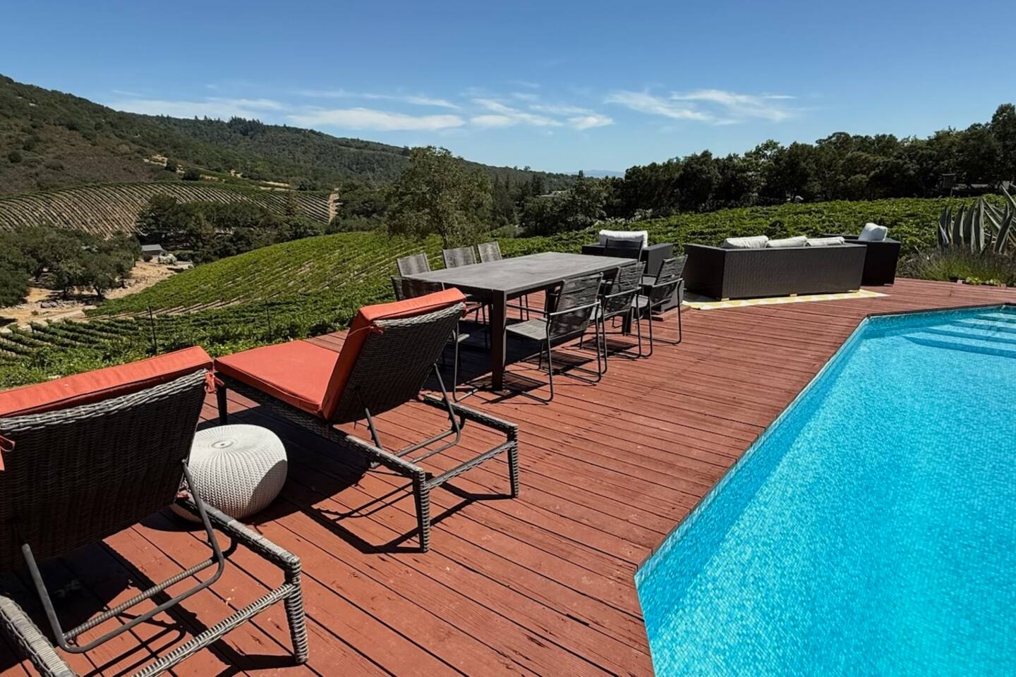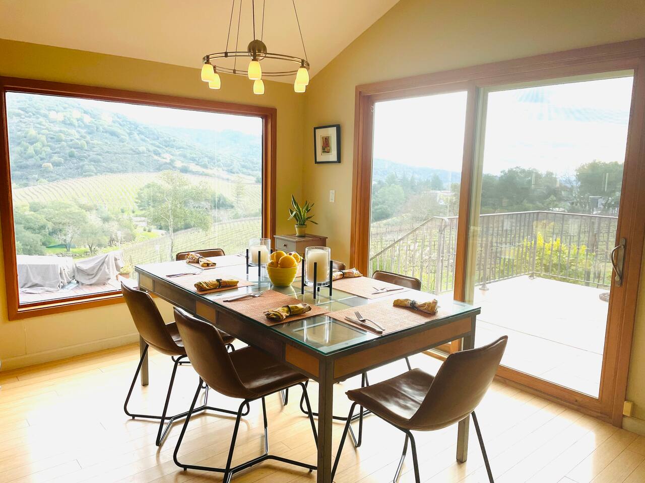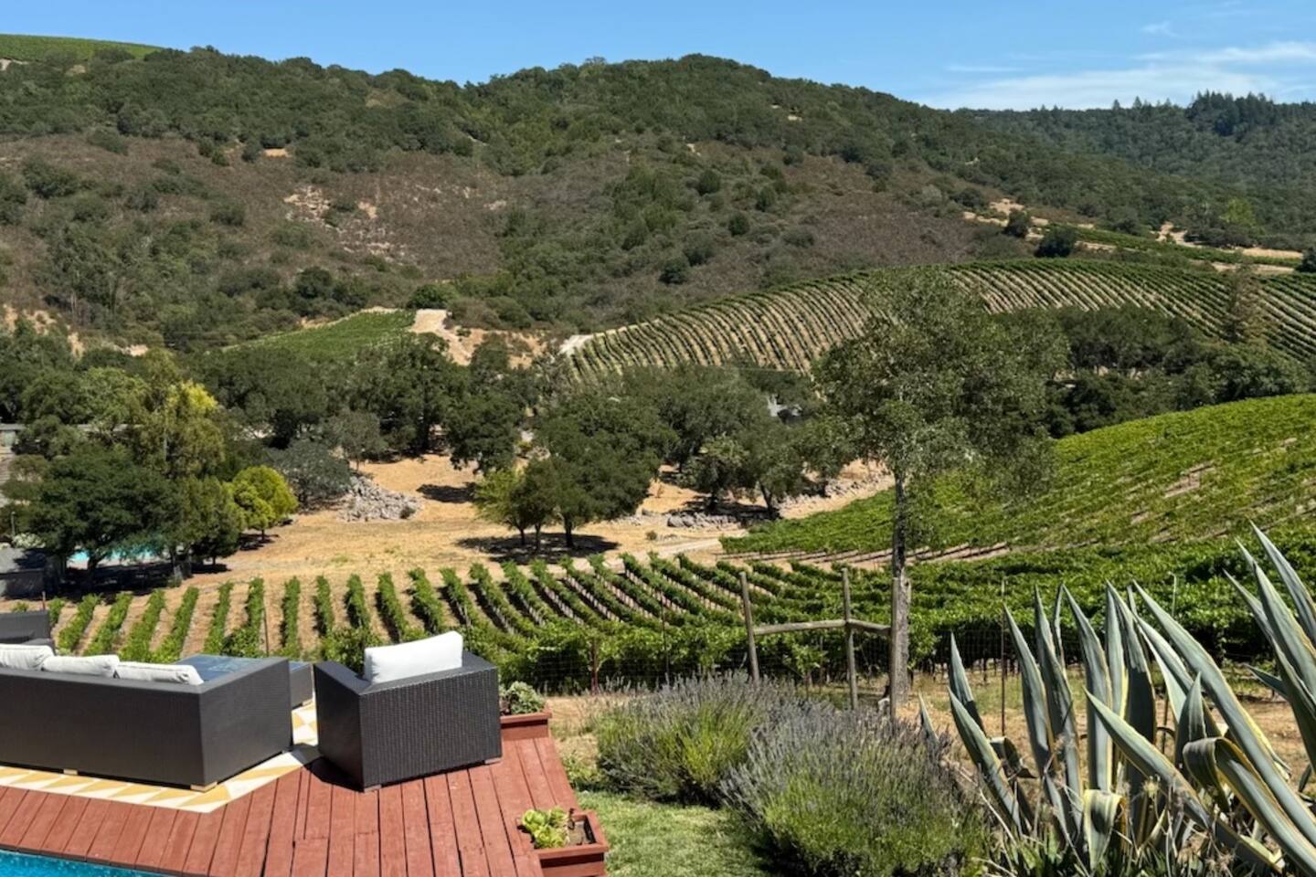 Wake to soft light spilling over the vineyards and the quiet hum of nature surrounding you. Sip your morning coffee on the deck as the valley stretches below, or unwind in the hot tub while the sunset paints the hills in gold and rose. Here, every moment invites you to slow down and savor the Sonoma countryside. Scenic Setting and Outdoor Living Set on the edge of 100+ acres of vineyards, this home offers panoramic vineyard views from its private infinity deck. The outdoor space is designed for peaceful connection, with a pool available seasonally from May to September, a year-round hot tub, and a shaded dining area for shared meals under the open sky. Stretch out on sun loungers, read on the daybed, or gather around the BBQ grill as the evening light fades. Comfortable Interiors Inside, the open-concept layout creates a warm flow between the kitchen, dining, and living areas. Cook in the kitchen equipped with a stainless steel stove and oven, dishwasher, refrigerator, coffee makers, and all essential cooking basics. A cozy fireplace and sound system make the living room perfect for relaxed evenings, while large windows fill the space with natural light and vineyard views. Sleeping Arrangements This home accommodates up to seven guests with four bedrooms and two full bathrooms. The primary suite upstairs includes a king-sized bed, ensuite bathroom, and private balcony overlooking the vineyards. On the first floor, two bedrooms each offer queen beds and share a full bathroom. A flexible office/bedroom includes a queen futon, ideal for an additional guest or workspace needs. Amenities and Comforts Enjoy thoughtful touches such as a washer and dryer, air conditioning, heating, ceiling fans, Smart TV, and WiFi with a dedicated workspace. Essentials like bed linens, towels, and bathroom amenities are provided. Board games and books offer quiet entertainment, while safety features include smoke and carbon monoxide alarms, a first aid kit, and baby safety gates. Location and Neighborhood Located just ten minutes from Sonoma Plaza and top wineries, this home provides easy access to tasting rooms, local cafés, and restaurants while maintaining a tranquil residential setting. The neighborhood is quiet and family-friendly, with grocery stores and cafés within walking distance. House Rules Maximum occupancy is six guests. No outdoor music, parties, weddings, or events exceeding the allowable occupancy. Quiet hours are from 10 PM to 7 AM. This vineyard retreat offers space to breathe, relax, and reconnect with the rhythms of nature, all within reach of the best that Sonoma Valley has to offer.